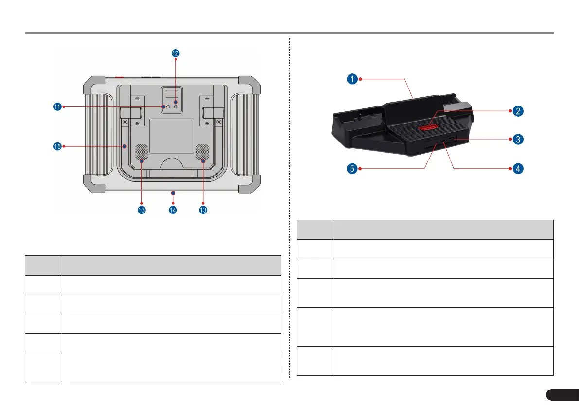 Table 2-2 formulates parts of X-431 PAD V tablet (rear):
