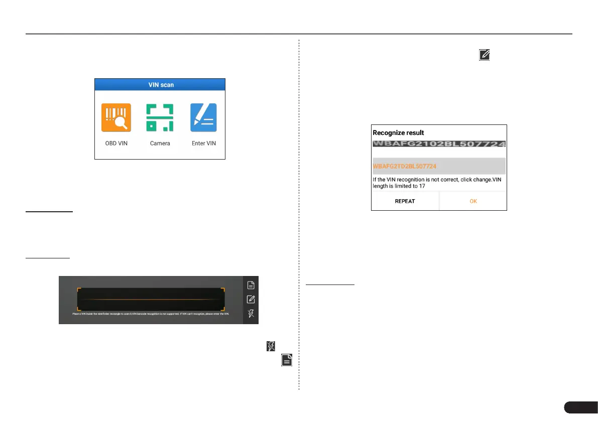 • If the VIN scanned is incorrect, tap the result eld to modify it and