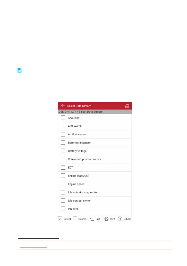 Tap “Read Data Stream” in function menu, the system will display data stream
