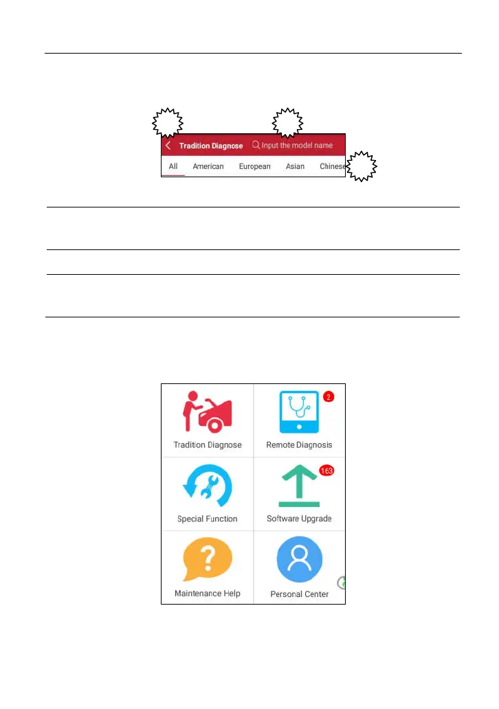 ehicle region buttons: Tap different buttons to switch to corresponding