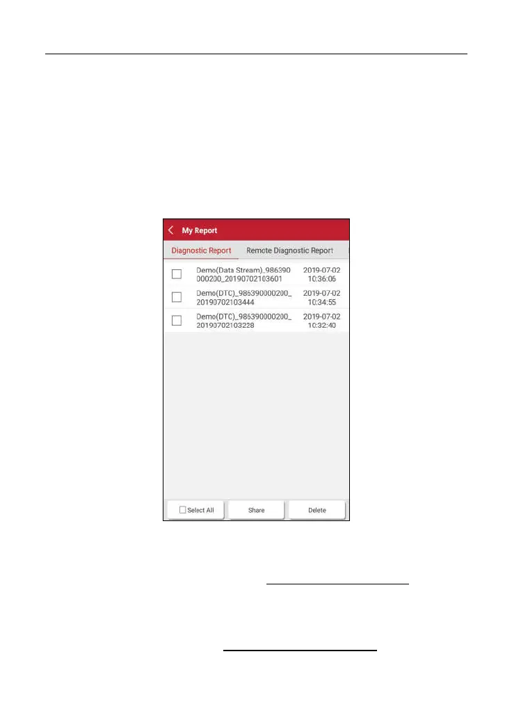 In case the DTC result is saved on Read Trouble Code page, the files will be