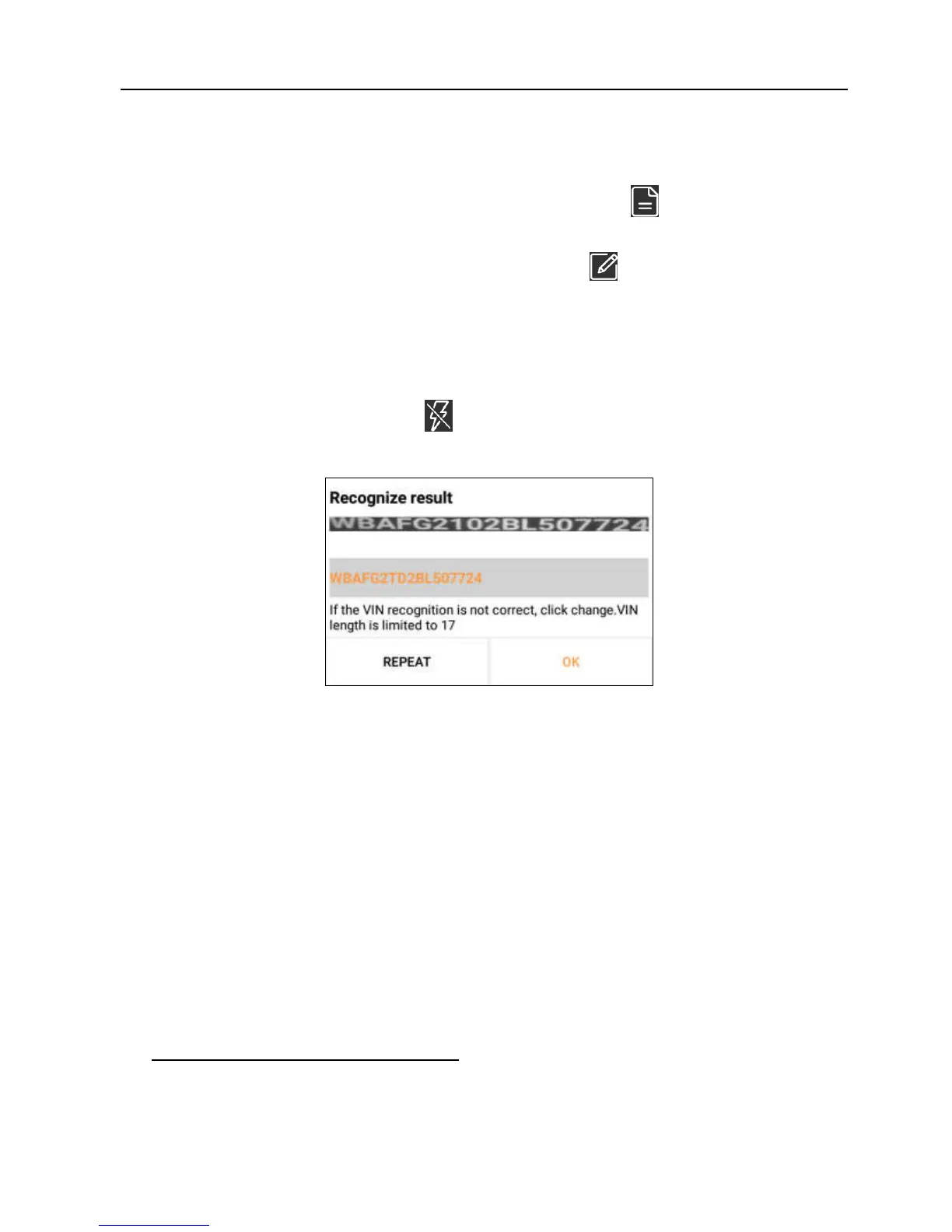 • If the VIN scanned is incorrect, tap the result field to modify it and then tap