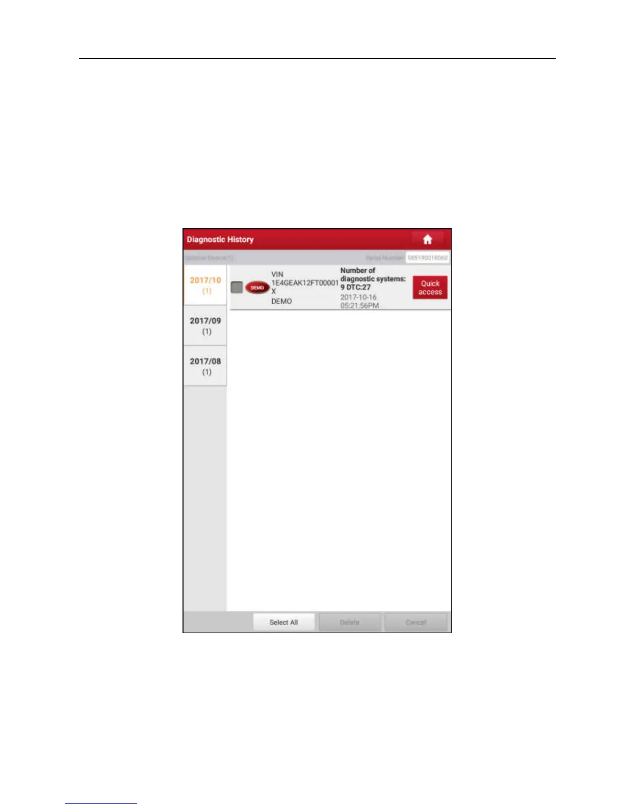• To delete certain diagnostic history, select it and then tap “Delete”. To