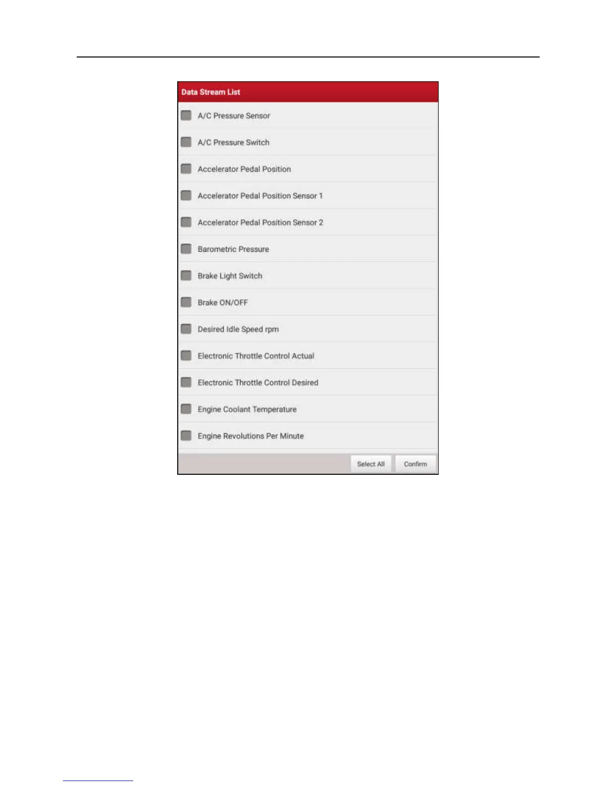 Select the desired data stream items and tap “Confirm” to jump to the playback