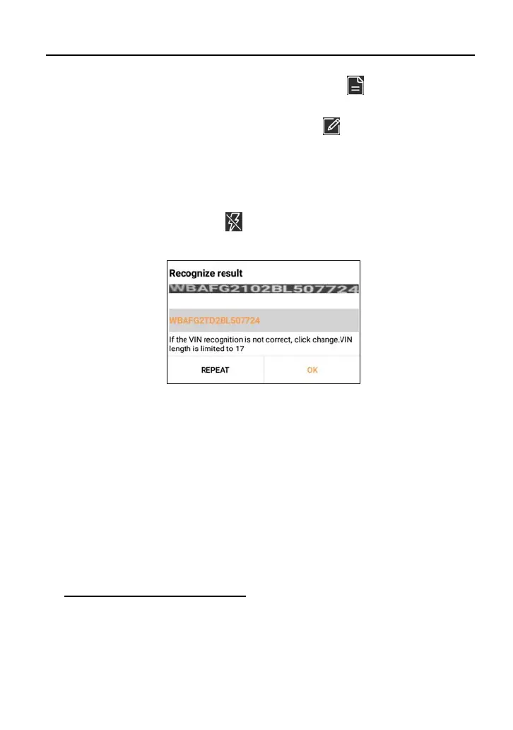 • If the VIN scanned is incorrect, tap the result field to modify it and then tap