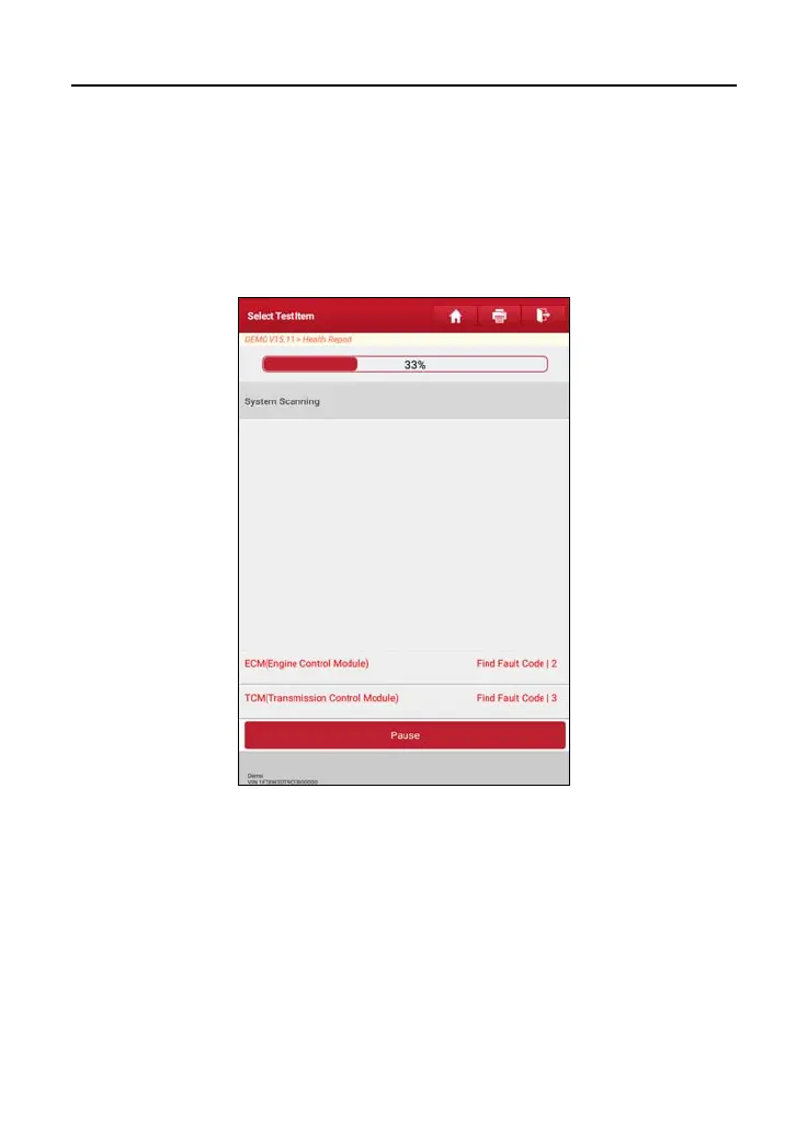 Tap “Health Report”, the system start scanning the ECUs and the screen