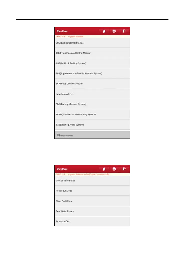 Tap the desired system (take “ECM” for example) to jump to the diagnostic