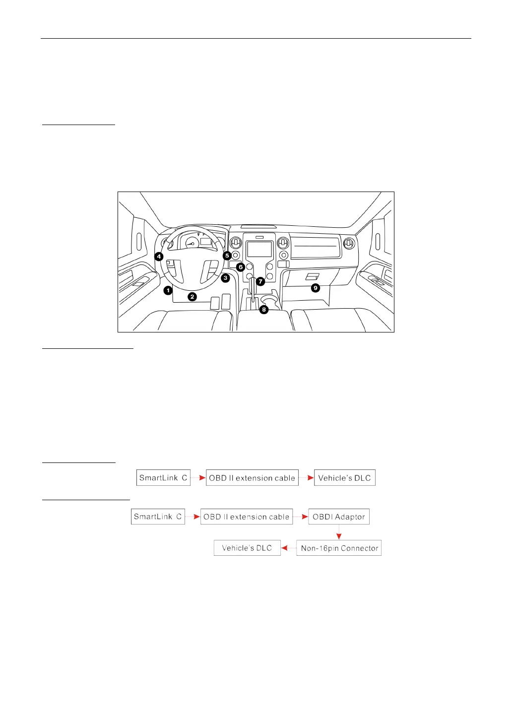 The method used to connect the VCI device to a vehicle’s DLC depends on the vehicle’s configuration as follows: