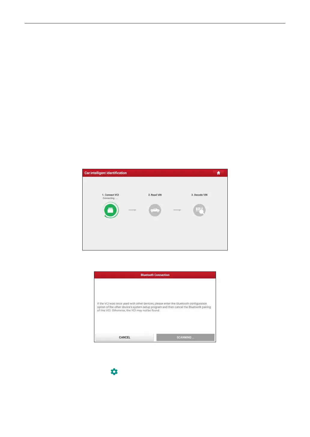 If the VCI was once used with other devices, you need to cancel the pairing of the VCI first via either one of the following