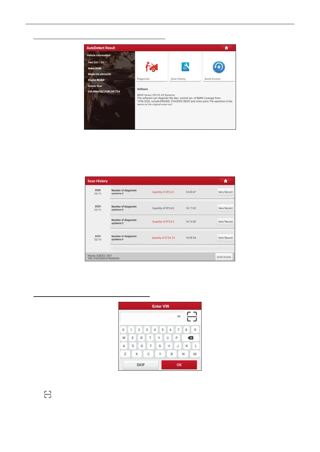 • Tap to launch the VIN recognition module.