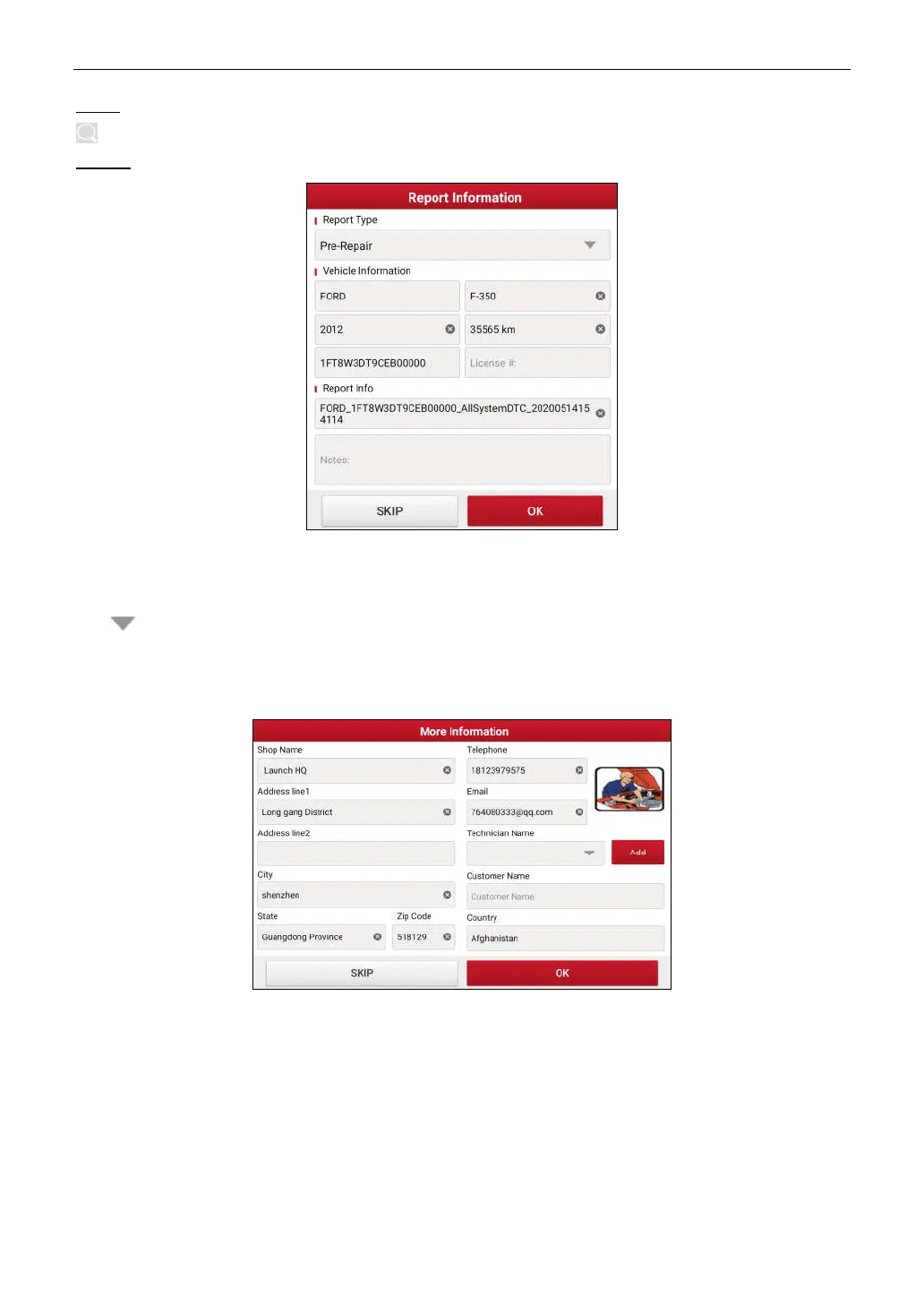 *Note: For workshop information, tap the input box to enter it. Alternatively you can also set it in