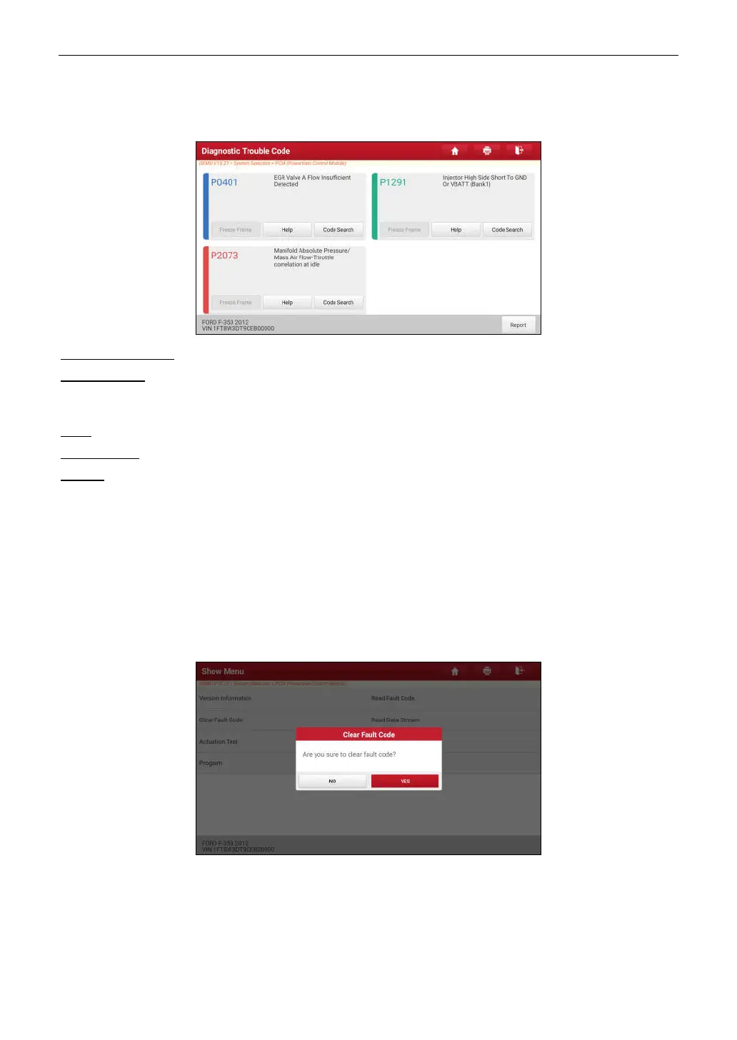 This function enables you to erase the codes from the vehicle after reading the retrieved codes from the vehicle and