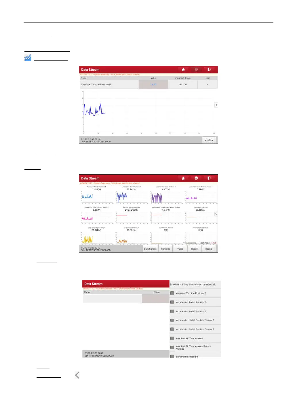 : Tap , a pull-down list of the data stream items appears on the screen. Select / deselect the