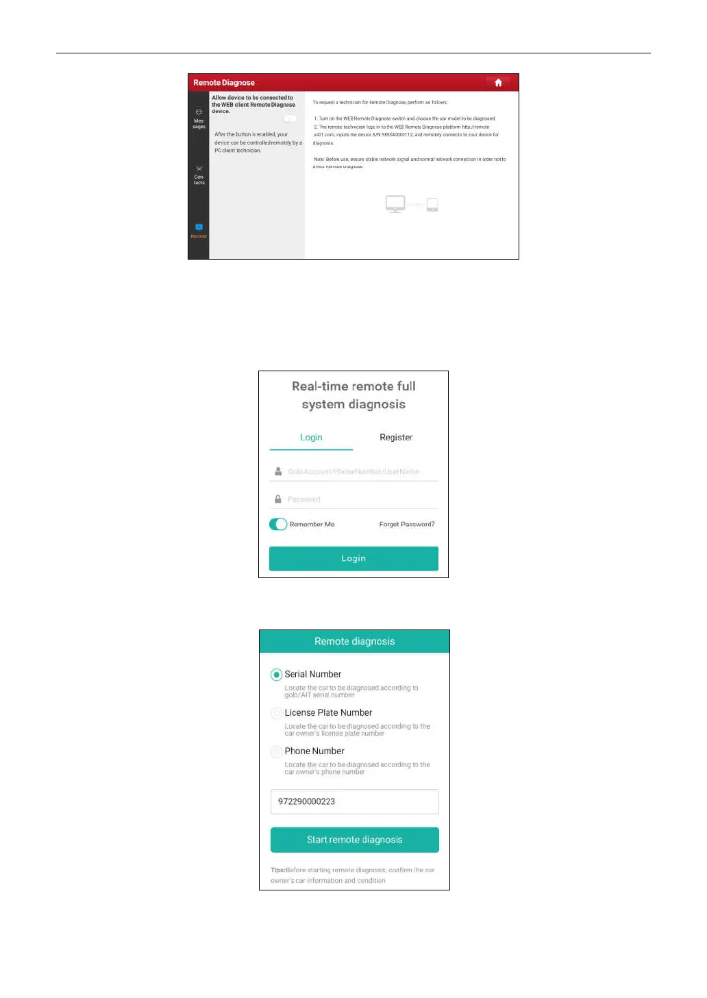 *Note: Before processing remote diagnosis, please make sure the tool is properly connected to the vehicle.