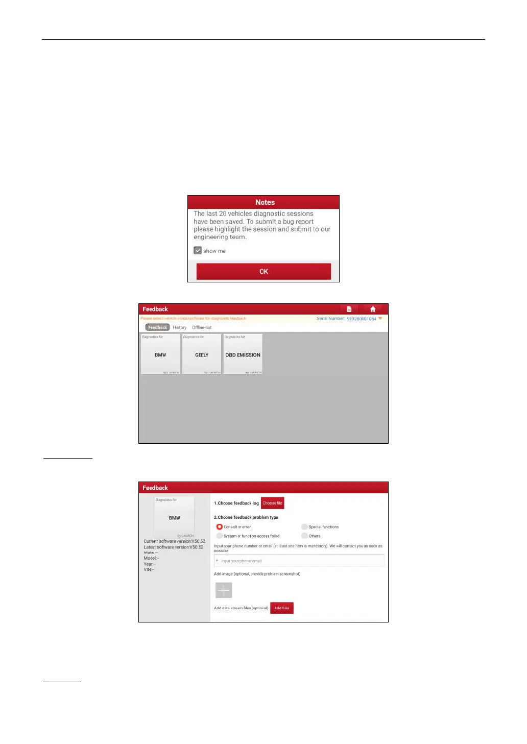 This item allows you to feedback your diagnostic problems to us for analysis and troubleshooting.