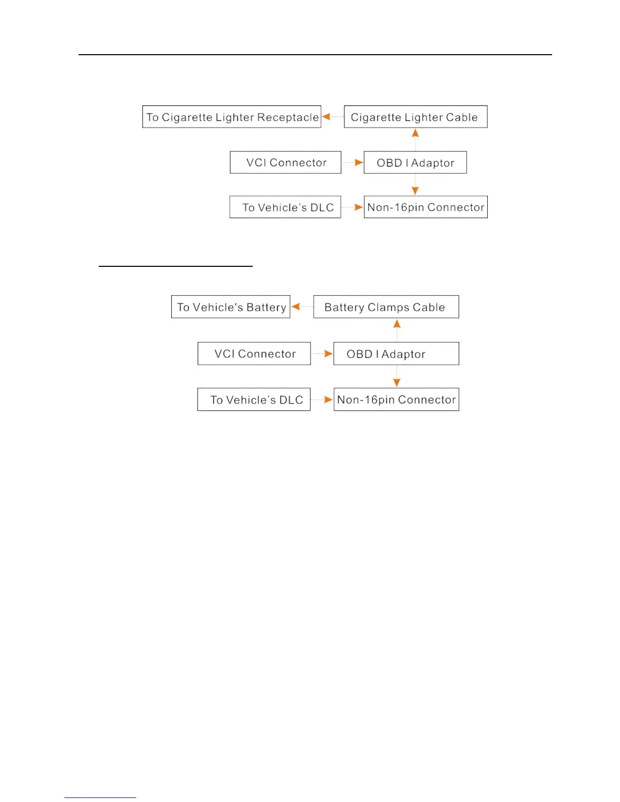 vehicle’s battery, and the other end to the power jack of OBD I adaptor.