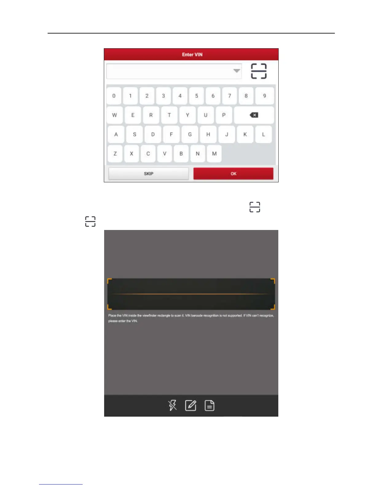 1) Tap ā€œ ā€ to launch the VIN recognition module.