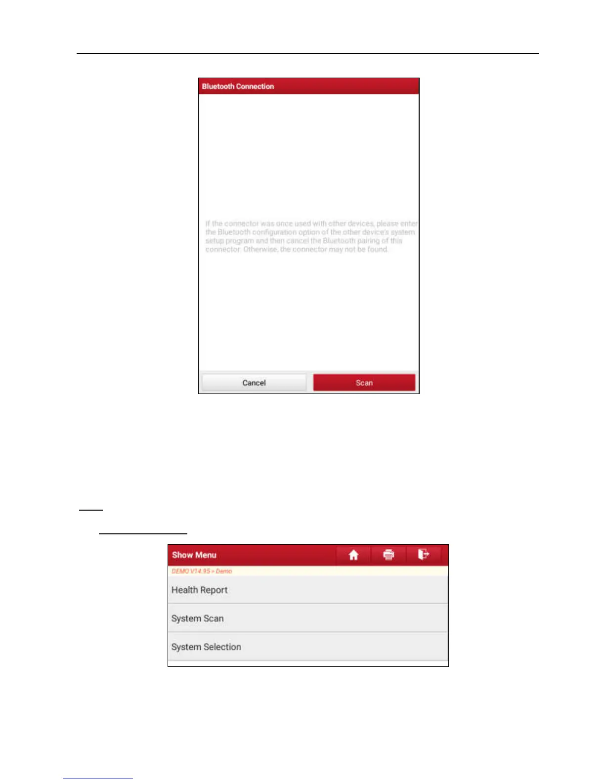 Tap “Scan” to start searching for the VCI connector. Once it is found, tap it to start