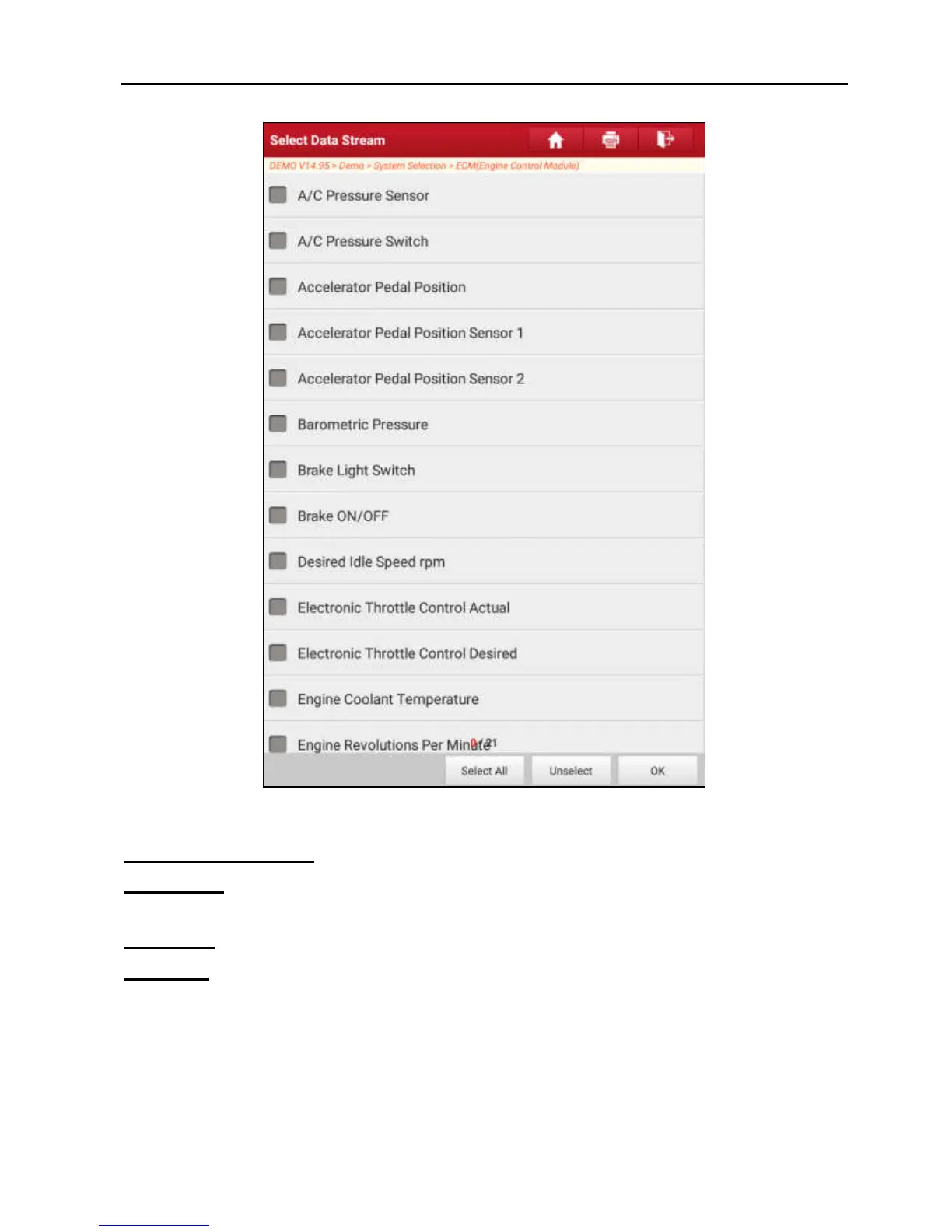 After selecting the desired items, tap “OK” to enter the data stream reading
