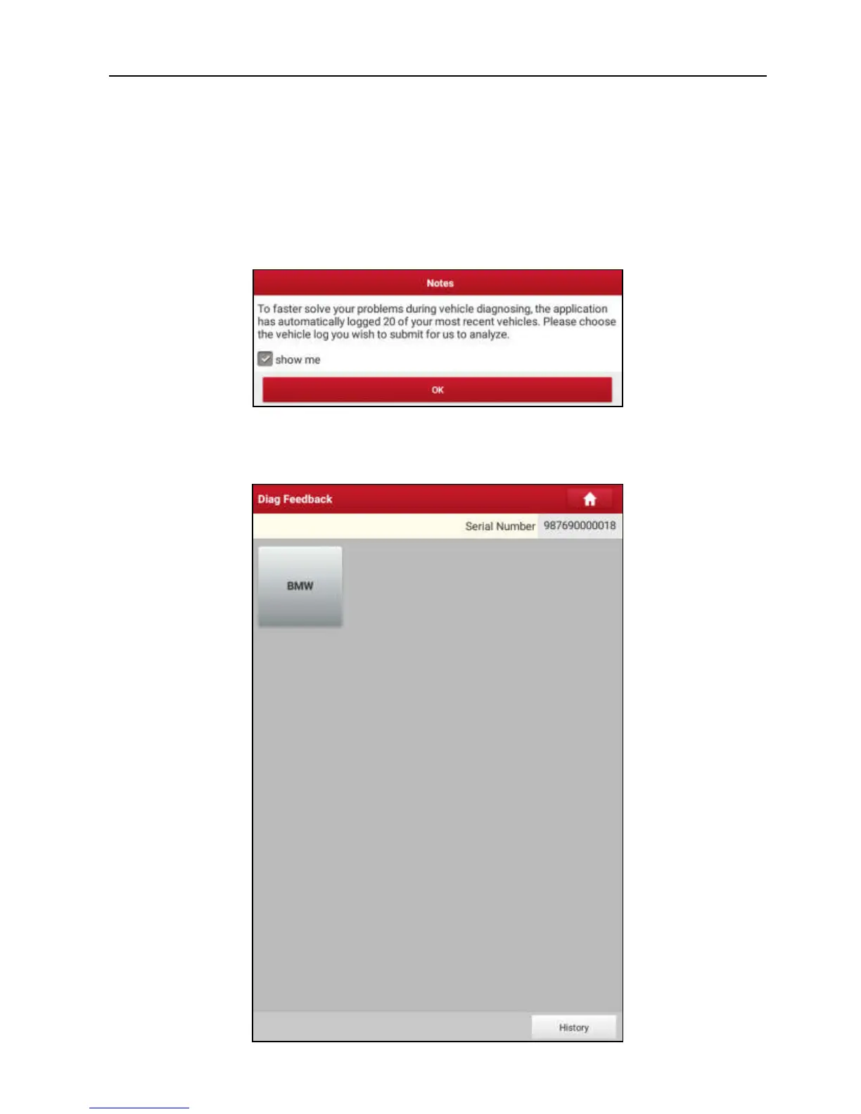 Tap “Diag. Feedback”, a pop-up message will appear: