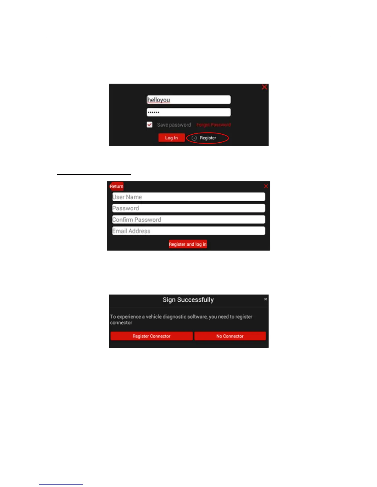 In Fig. 4-5, tap “Register Connector” if you want to experience vehicle diagnostic