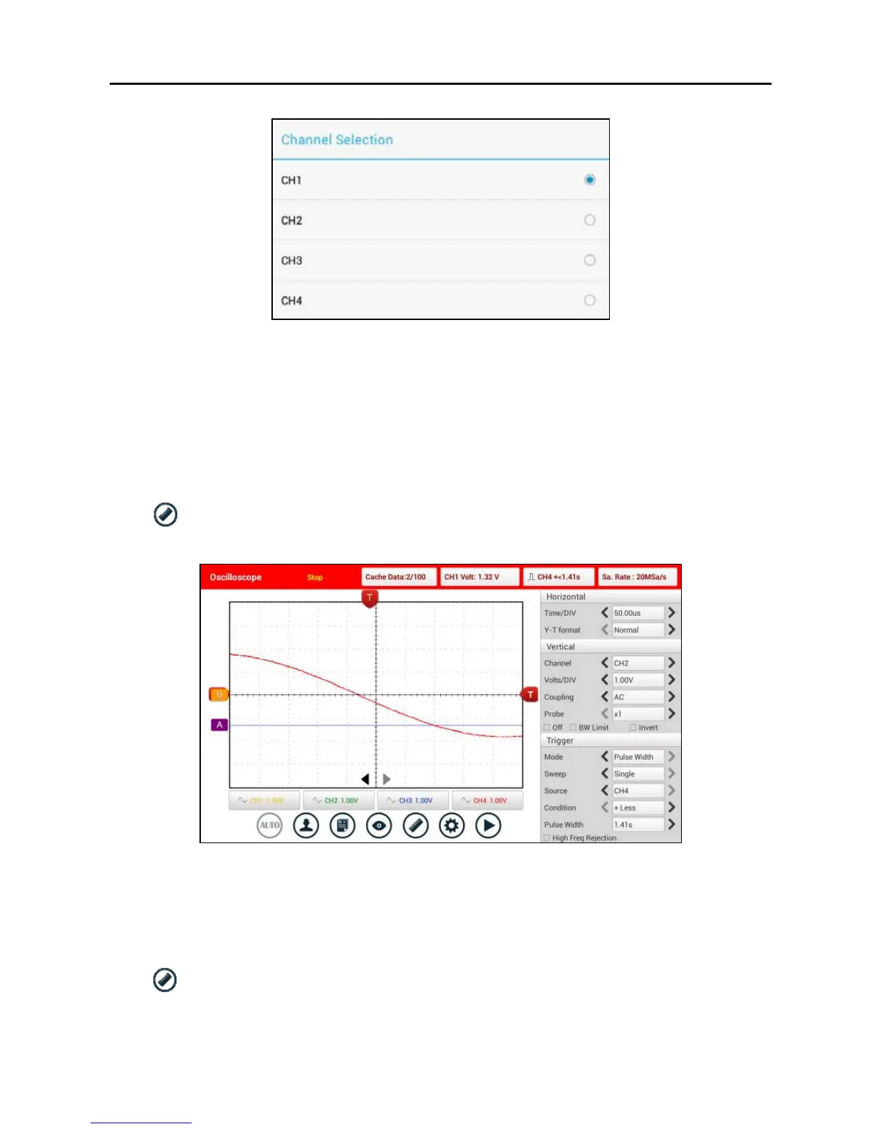 voltage. Move A line left or right to fine-tune timebase. A line is a solid line and B