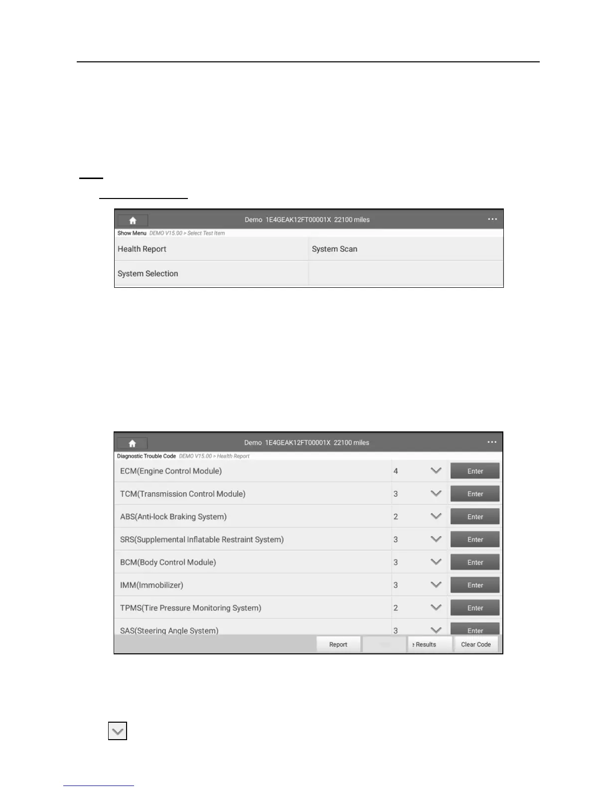 Tap “Health Report”, the system start scanning the ECUs. Once the scanning is