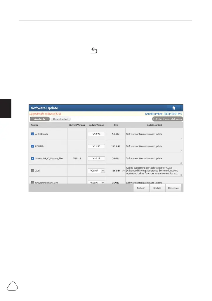 center. Check the software you want to upgrade, and then tap
