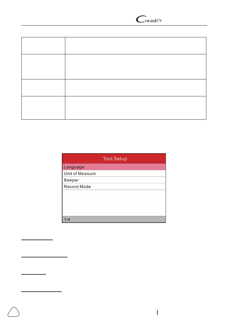 Displays the tool setup menu, which lets you make