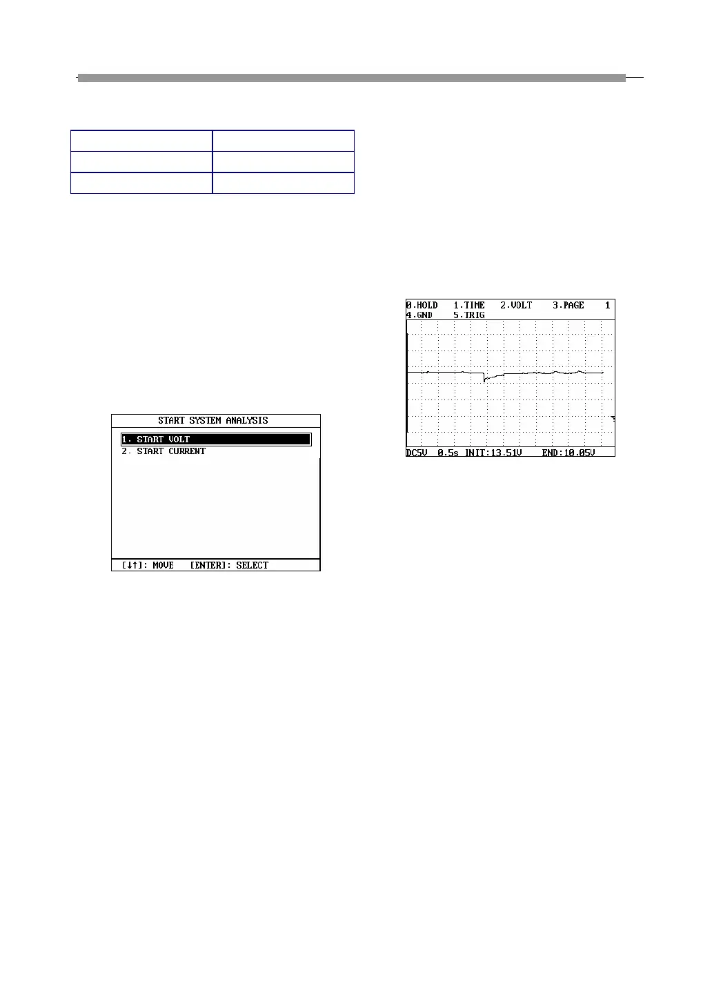 analysis, the screen will display the starting voltage