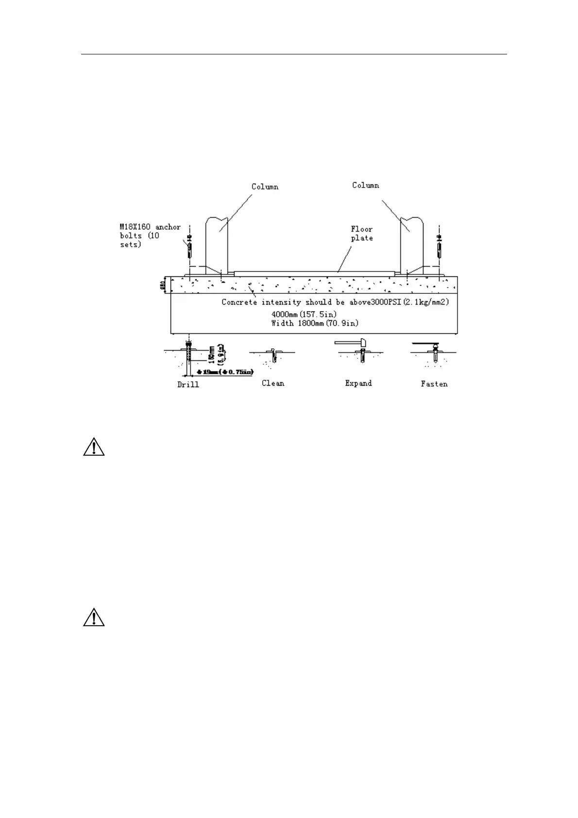 ground. Drill and install anchor Bolt s at one time,
