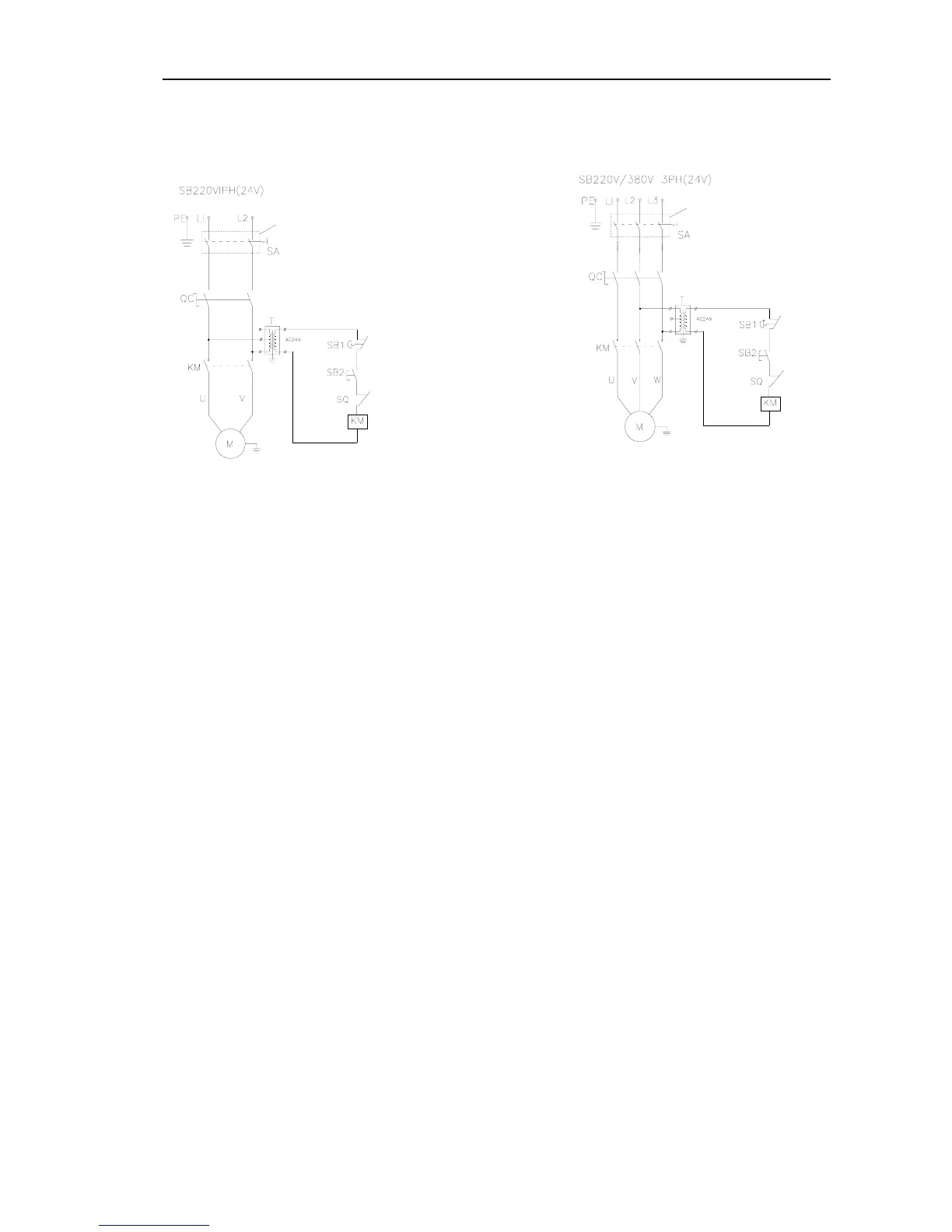M–Motor KM–Contactor SB1–Emergency Stop Switch