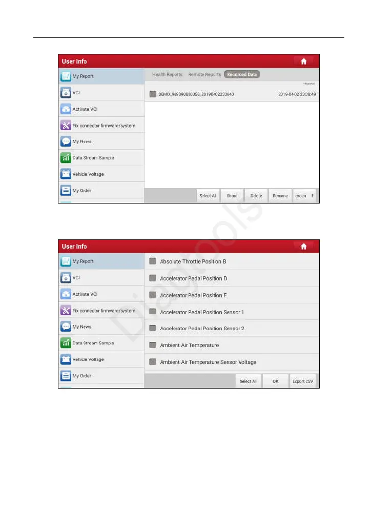 Select the desired data stream items and tap “Confirm” to jump to the playback