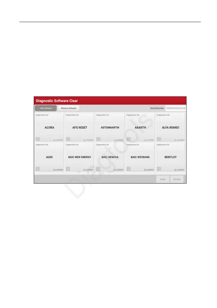 This item allows you to hide/clear the diagnostic software that is not frequently