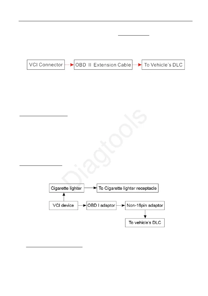 cigarette lighter receptacle, and the other end to the DC-IN jack of the VCI