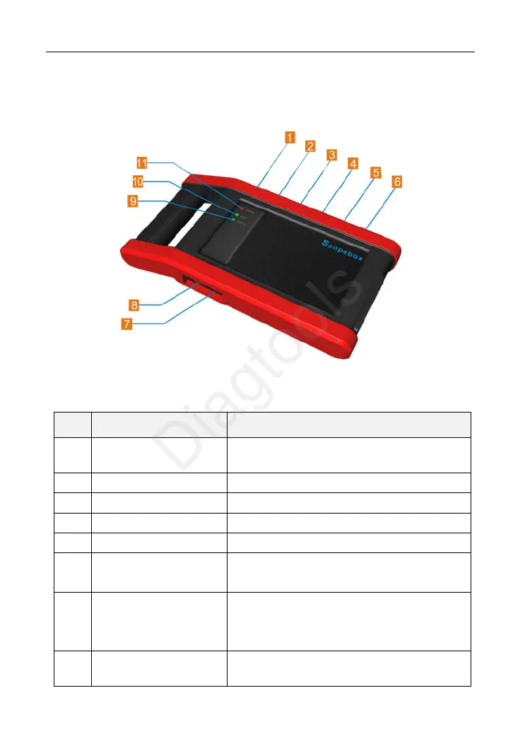 Table 12-1 shows the ports and indicators for the Scopebox.