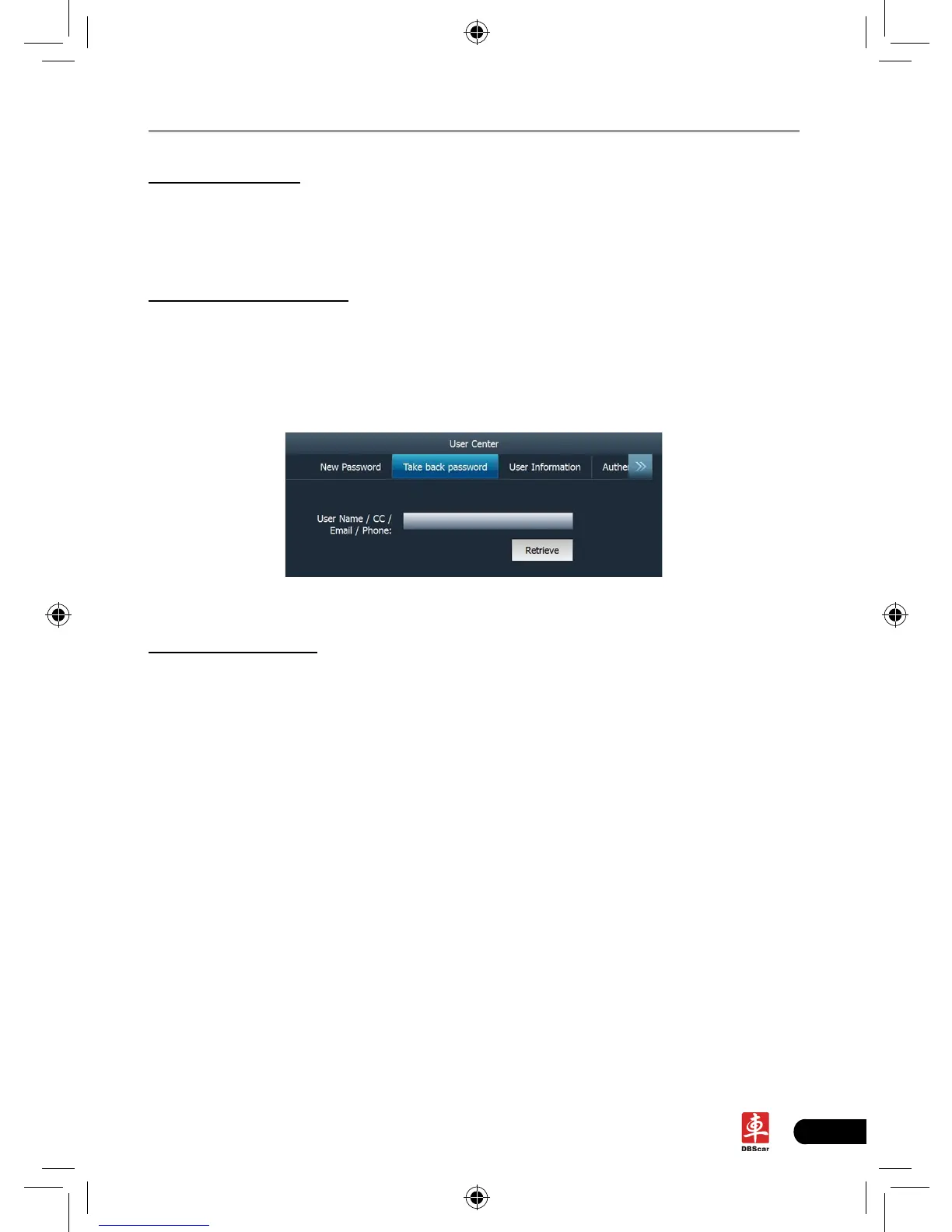 Click “Take back password”, the screen will display as Fig. 2-24. Input your use