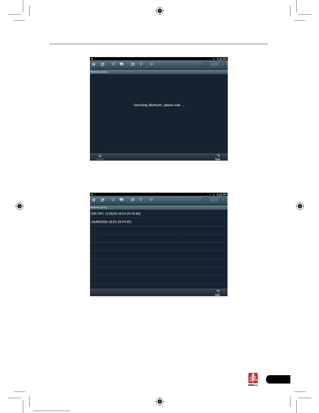 After searching, a list of bluetooth devices will be shown on the screen. See