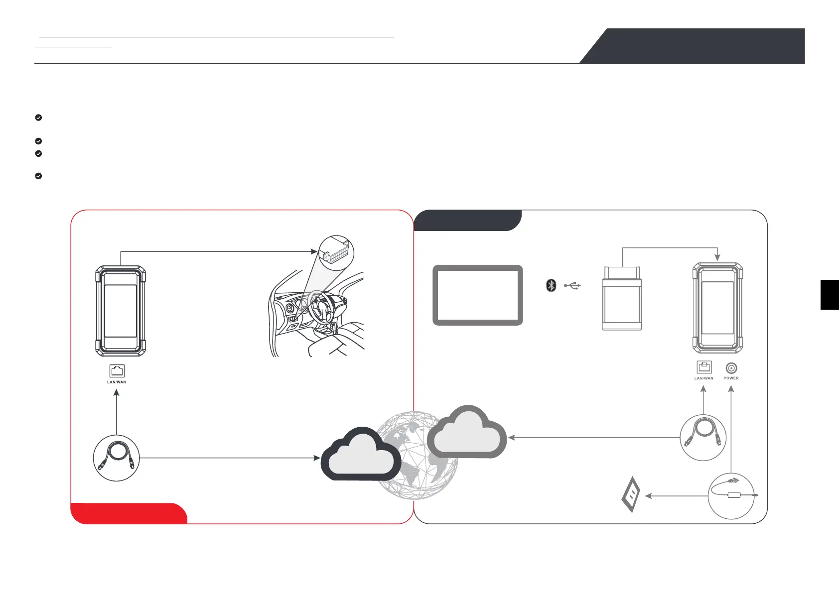 * Durante la diagnosi remota, non scollegare il veicolo e la rete (Si consiglia la banda larga di rete di 100Mb e oltre). Oltre a, una spina SmartLink C V2.0 può ricevere solo un'operazione di diagnosi remota alla
