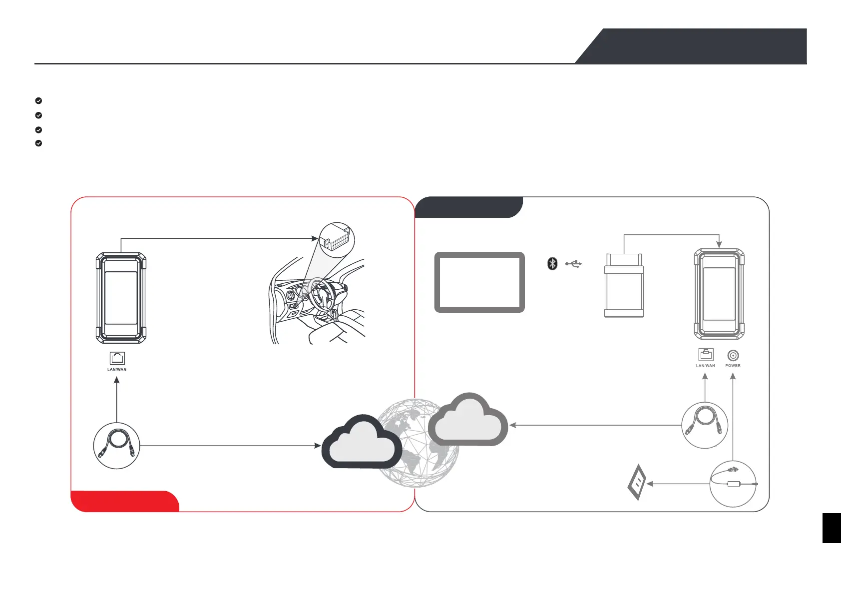 連接遠端診斷盒 -- 連接車輛診斷座和網線,並將診斷盒設置為遠端診斷模式。