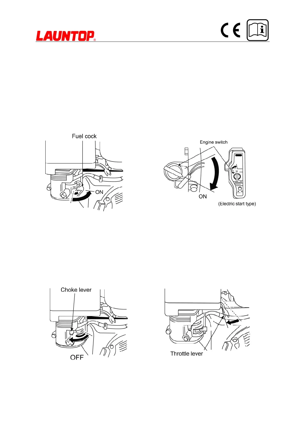 ③ Complete CLOSE the choke valve ④ Move the throttle lever a little to OPEN