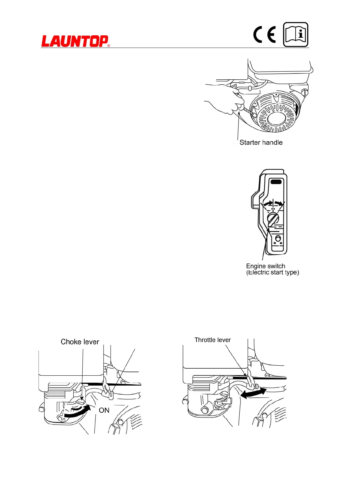 ⑥ After engine starts, gradually turn the choke lever to the full "OPEN" position, and