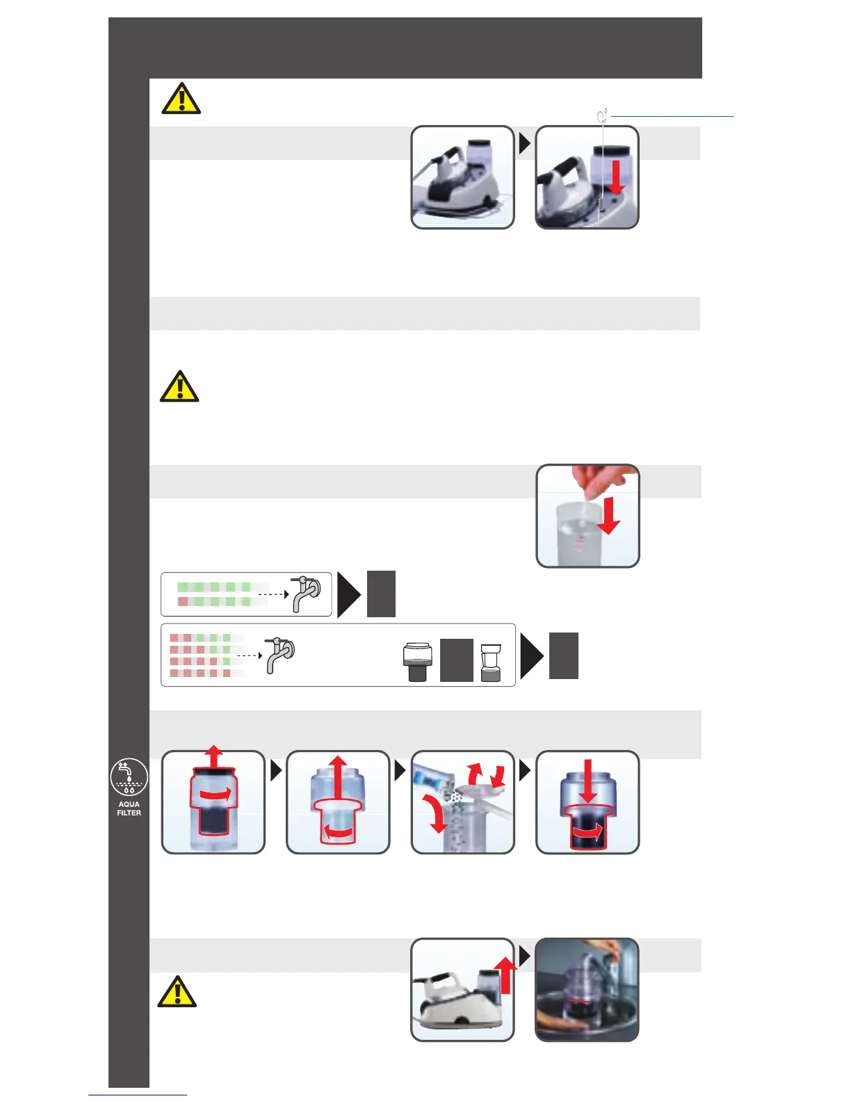 Never use: perfumed water, rainwater, distilled water, softened water, water from dehumidifiers/tumble