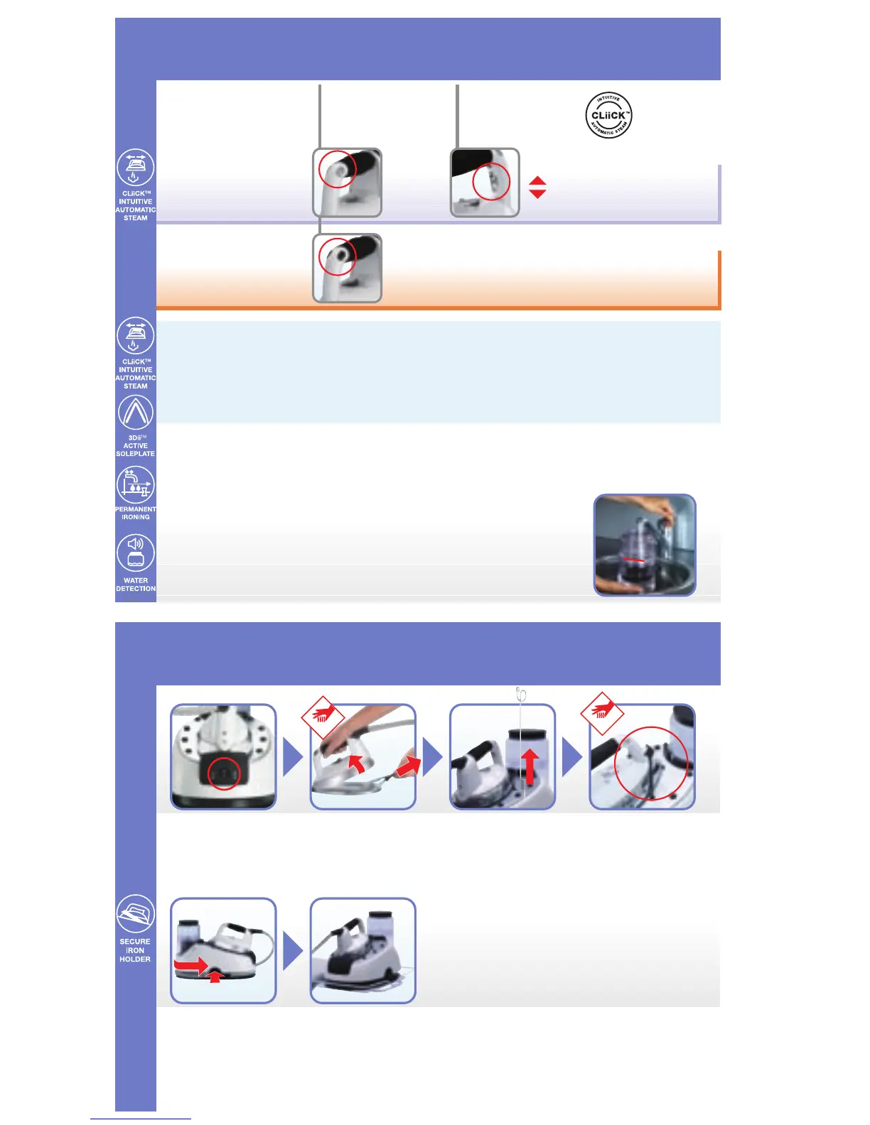 2. Steam is injected evenly onto the entire surface of the soleplate, penetrating all the fibres.