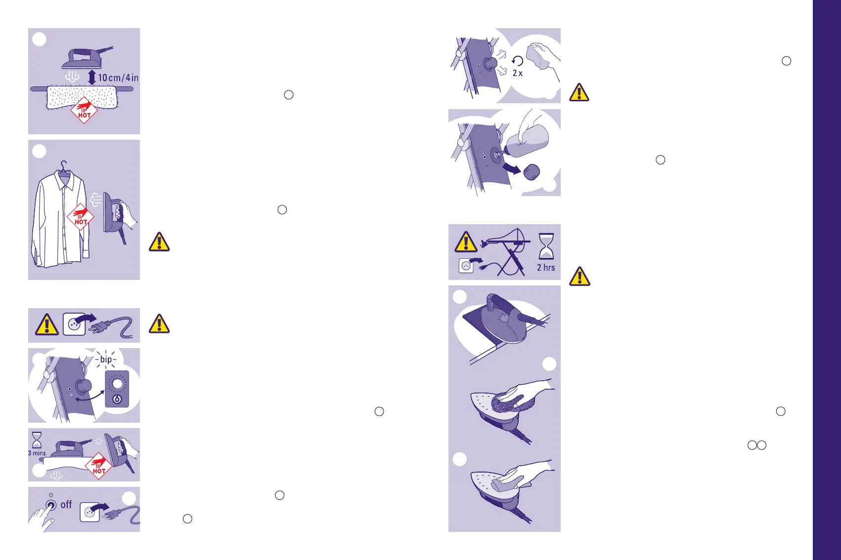 protective soleplate (8) at around 2-3 cm / 1-2 in from the fabric, then