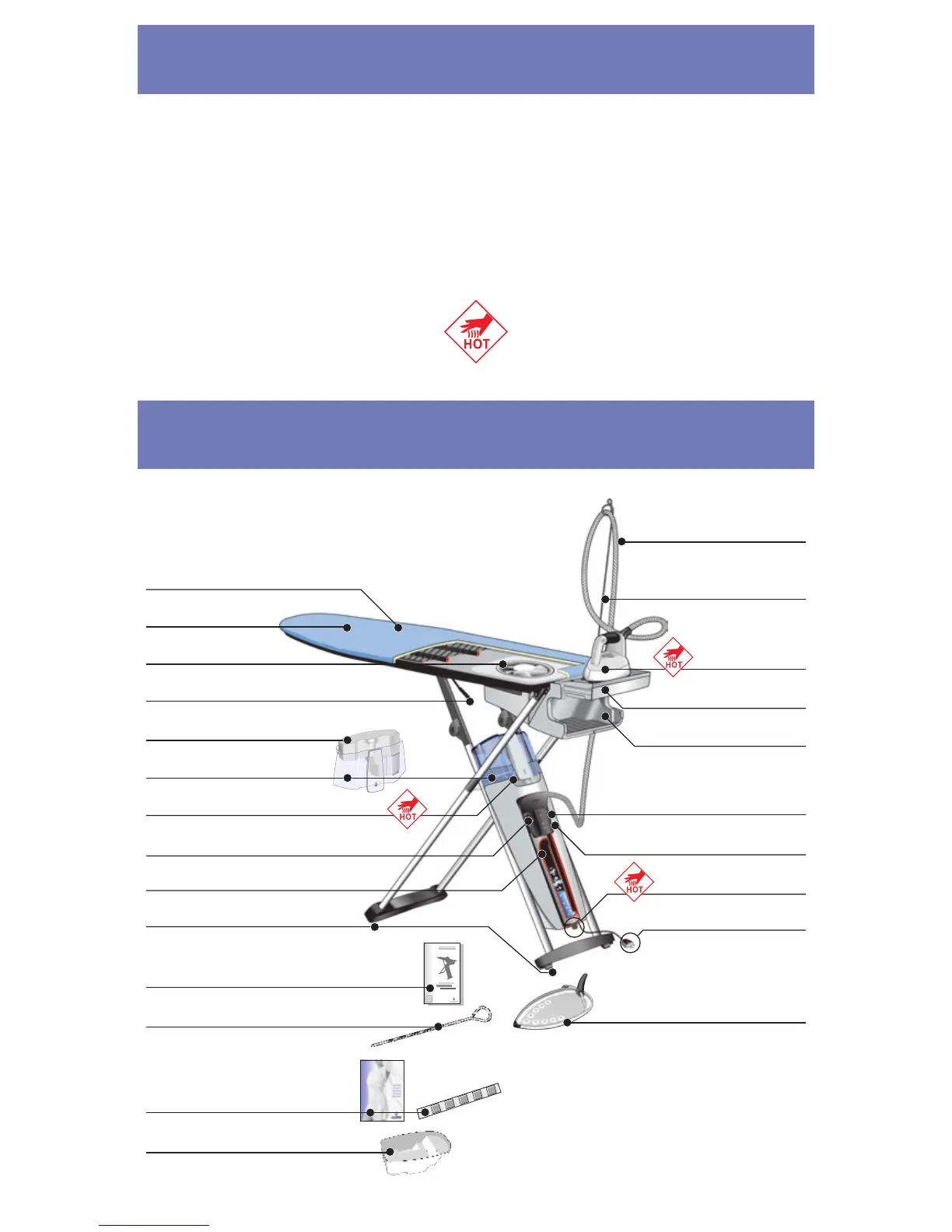 Note: Those parts which get very hot are marked in the