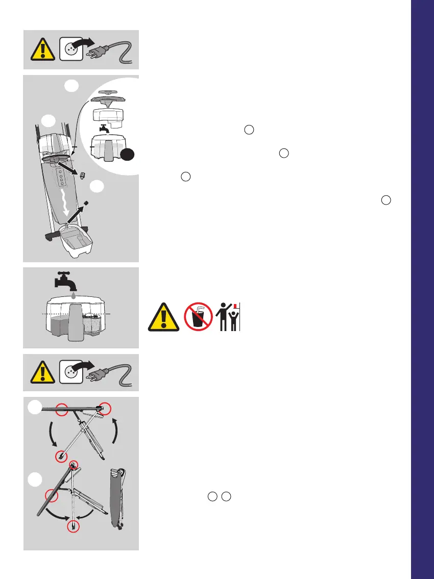 • Mettez le fer dans le rangement sécurisé (5) . Rabattez le repose-fer en