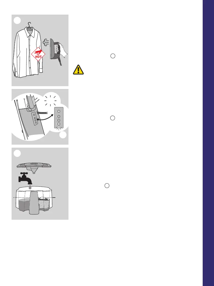 Wanneer het geluidssignaal klinkt, stopt het stomen en dient u het wa-