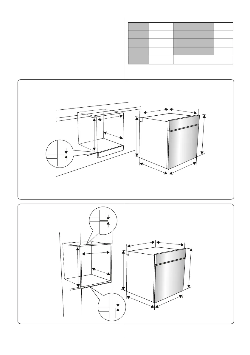 dimensioni per l'installazione del forno.
