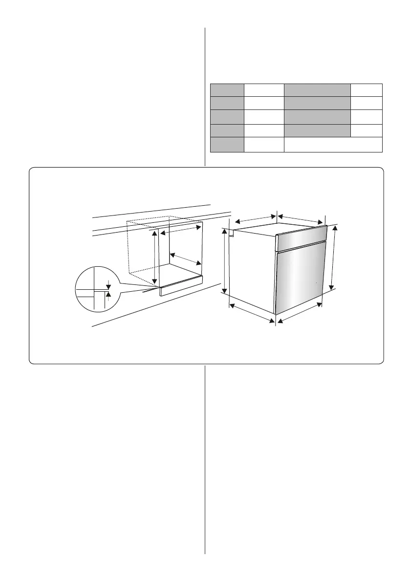 C (mm) 595 min. H/I (mm) 600/590